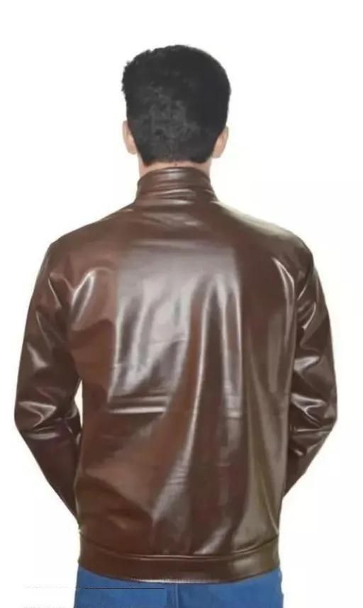 Product Name: Men's Solid Rexine Leather Dark Brown Jacket